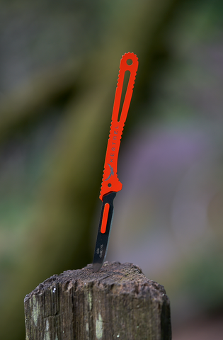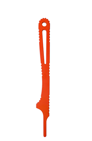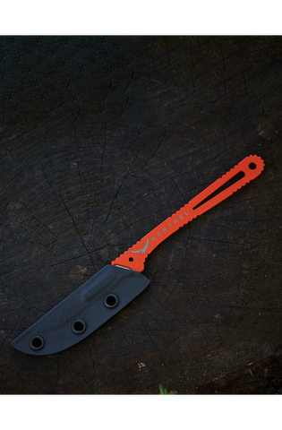 The Mountain Scalpel is the lightest replaceable blade knife on the market. It is made from aerospace grade Titanium and is precision machined to accept 60A, 70A and 60XT scalpel blades. It pairs perfectly with a fixed blade or can be used as a standalone knife when counting ounces. Included are 7 replaceable scalpel blades and a custom molded ultralight kydex sheath. Cerakoted bright orange for high visibility.