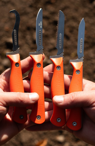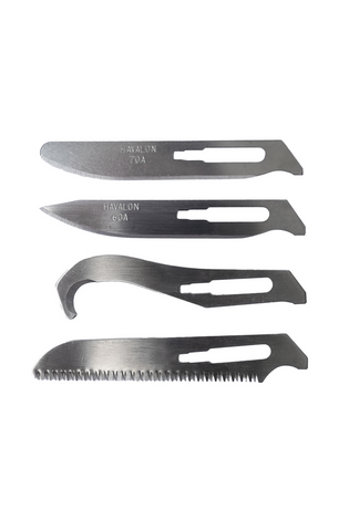 Turn your scalpel into four purpose-built tools in one pack. This kit gives you the cutting precision of the 60A, the control of the blunt tip 70A, the speed of a dedicated guthook and the bite of a compact bone or wood saw. Every blade is ready for real work in the field and gives you the versatility to handle any part of the animal from start to finish.